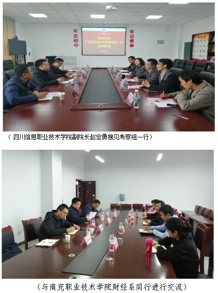 为了巩固提升省优质高职院校建设成果,发挥红色旅游专业群的示范引领作用,加快推进“三个一流”建设。文卫院长一行于11月18日至21日前往南充职业技术学院、四川信息职业技术学院、巴中职业技术学院、达州职业技术学院等进行考察交流。