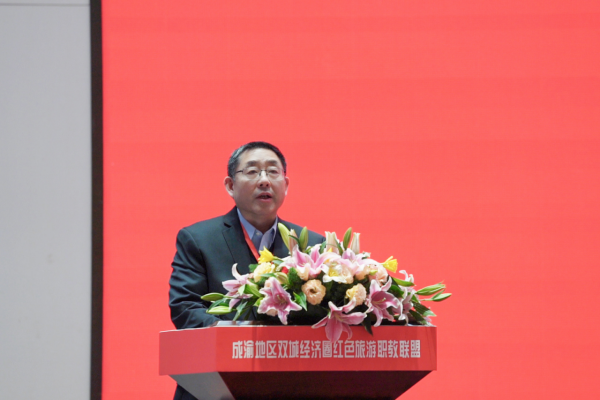 杨亚培在讲话中指出,成立成渝地区双城经济圈红色旅游职教联盟是积极响应中央经济工作会议精神以及省委十一届八次全会有关高质量发展区域经济的有力举措,也是贯彻落实重庆市教育委员会、四川省教育厅关于《成立成渝地区双城经济圈职业教育协同发展合作框架协议》要求的具体体现,更是成渝地区旅游相关职业院校、红色旅游经典景区、企事业部门、研究机构、旅游行业协会等80余家单位共同参与的多边大合作、跨界大融合。他希望各成员单位弘扬巴蜀文化,继承革命精神,以爱国主义教育推动人才培养和发展研究,紧抓成渝双城经济圈建设机遇,着力提升职业教育协同发展。四川省教育厅也将继续支持太阳成城集团的建设与发展,支持成渝地区双城经济圈红色旅游职教联盟努力建成全国示范性职业教育联盟。