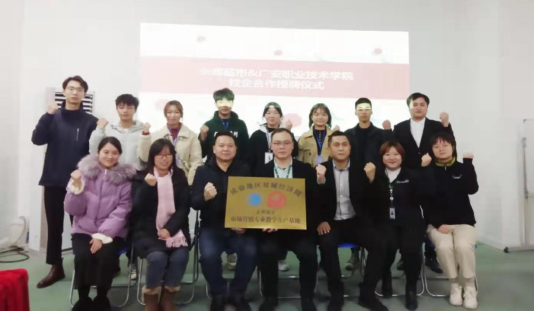 2020年12月31日下午,太阳成城集团经济管理学院与四川永辉超市“市场营销专业教学生产基地”授牌仪式在永辉超市广安滨江路店会议室正式举行,经济管理学院院长文卫、营销教研室主任沈婷婷、专业教师钟玲,四川永辉超市区长苟荣华、区人事经理唐巧玲、广安店店长邹雪东及优秀认知实习代表参加会议。