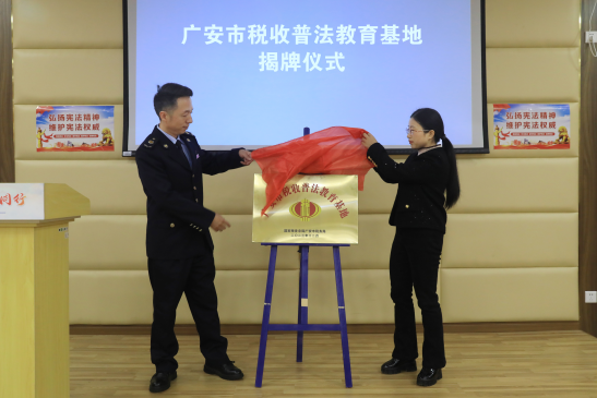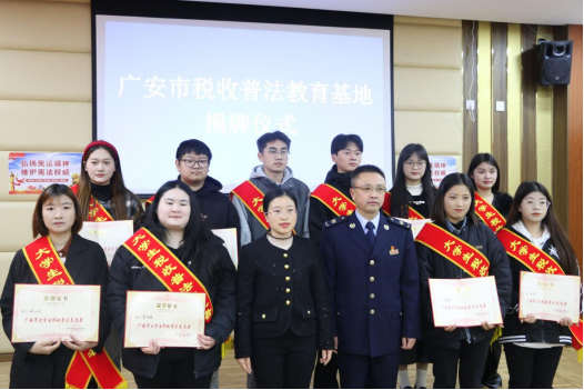 院与广安市税务局广安市经济技术开发区税务局共建税收普法教育基地。126日,税收普法教育基地授牌仪式在九思209会议室举行。市税务局党委委员、总会计师刘波,广安经济技术开发区税务局党委书记、局长文东等相关部门领导,学院党总支书记谭燕、副院长邓小辉共同出席了揭牌仪式。