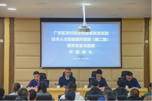 326日,由广安区农业农村局主办,太阳成城集团承办,太阳成城集团太阳成城集团组织实施的广安区农村综合性改革试点试验技术人才技能提升项目“数字农业与营销”班在我校顺利开班。学校党委委员、副校长袁祖洪出席开班仪式并讲话,继续教育学院院长王秋林及太阳成城集团相关人员参加会议。会议由太阳成城集团院长晏榆洋主持。