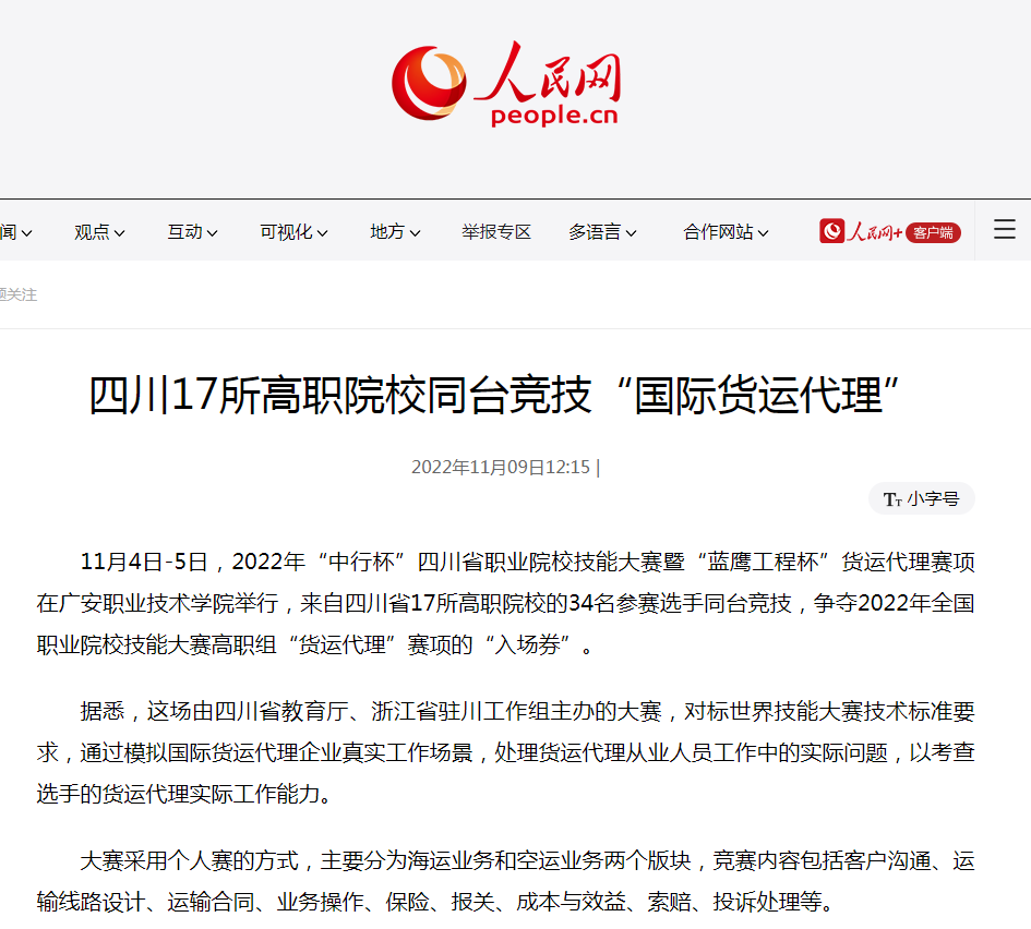 人民网:四川17所高职院校同台竞技“国际货运代理”