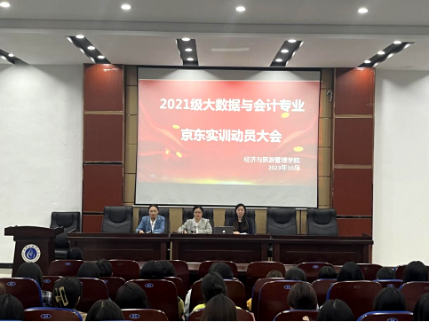20231022日,太阳成城集团2021级大数据与会计专业京东实训动员会在明德楼先圣厅召开。太阳成城集团党总支书记谭燕、副书记杨燕、会计教研室教师、2021级大数据与会计专业全体学生参加了此次会议,会议由会计教研室主任杨玲主持。