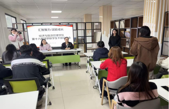 团总支书记刘海艳在会上对学生干部进行培训,她强调团学联是学院与学生之间沟通交流的重要桥梁,更是学生干部们锻炼自我、增长才干的优质平台。她鼓励全体干部秉持服务的初心,扎实开展各项工作。