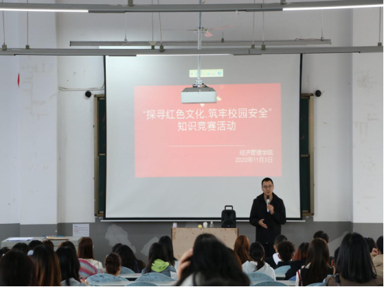 2020年11月10日,我院在明德楼阶梯教室五开展了以“探寻红色文化  筑牢校园安全”为主题的校园安全暨红色旅游知识竞赛活动,经管学院副院长郭智伟出席活动并讲话。