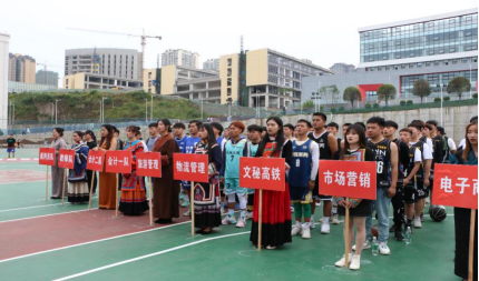 开幕式在庄严的国歌声中拉开帷幕,身着少数民族服饰的同学引领8支参赛队伍迈着整齐的步伐入场既展示了民族的团结精神,又充满了朝气与活力。喻忠书记发表了热情洋溢的致辞,他指出篮球运动是展示青春活力的运动,是展示团队精神和篮球元素优化组合的运动,是竞技加拼搏、比赛加友谊、激情加汗水的 运动,希望同学们秉承“团结第一、友谊第一、安全第一、比赛第二”的比赛精神,赛出风格,赛出水平!