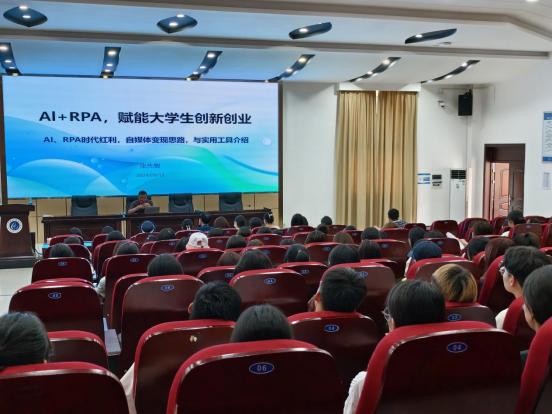 本次讲座不仅拓宽了大学生对AI+RPA技术的认知边界,更为大学生创新创业提供了新思路与技术支持,有效激发了青年学生的创新创业热情,奋力为科技强国建设贡献青春力量,同时促进教师们进一步聚焦新质生产力发展布局,推动服务高质量发展。