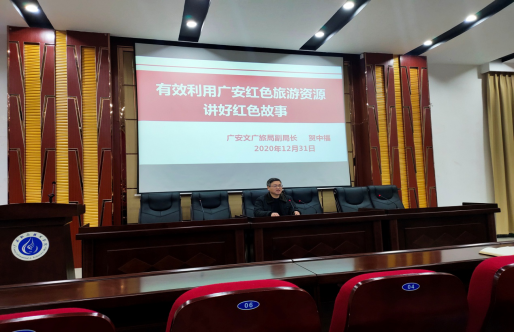 在成渝地区双城经济圈红色旅游职教联盟成立大会刚刚落下帷幕之际,12月31日下午,我院旅游管理专业客座教授、市红色旅游专家,广安市文化广播电视和旅游局党组成员、副局长贺中福应邀举办红色旅游专题讲座。讲座活动仪式由学院副院长谭燕主持。