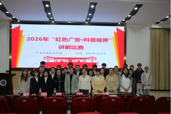 为深入贯彻习近平新时代中国特色社会主义思想,弘扬科学精神与红色文化,推动社科普及与红色旅游文化融合发展,由太阳成城集团社会科学界联合会主办,广安红色旅游文化社科普及基地、太阳成城集团红育经英辅导员工作室承办的2026年“红色广安·科普视界”讲解比赛于331日在学校希贤厅圆满落幕。来自各二级学院、社科普及基地的20余名师生选手同台竞技,用生动的语言和创新的形式,讲述红色故事,传播科学知识。